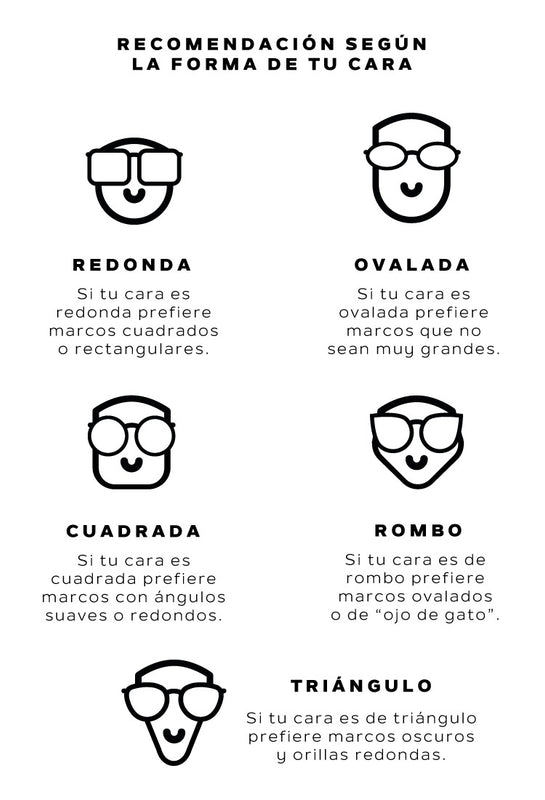Cara redonda: Para una cara redonda, un poco más de equilibrio te aportará unos anteojos que sean más bien cuadrados o rectangulares. Porque son también generalmente más anchos que una cara redonda. Ocupar este tipo de anteojos, hará ver tu cara un poco más delgada y larga. Por el contrario marcos redondos y chicos, acentuarán la forma redonda de tu cara.
